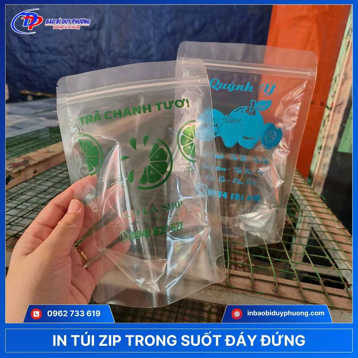 Với thiết kế đơn giản, làm nổi bật sản phẩm bên trong, do đó túi zip trong suốt tại In Bao Bì Duy Phương là mẫu túi đang được khách hàng ưa chuộng. Nếu bạn đang muốn sở hữu túi zipper trong suốt riêng cho thương hiệu mình, hãy liên hệ ngay qua số hotline 0962.733.619 để được tư vấn và báo giá chi tiết.
