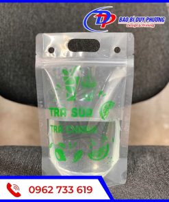 - Túi zip quai xách trà sữa: Loại túi này được trang bị quai xách chắc chắn, tiện dụng và phù hợp với trà sữa đóng gói lớn;